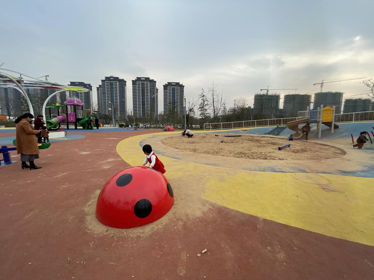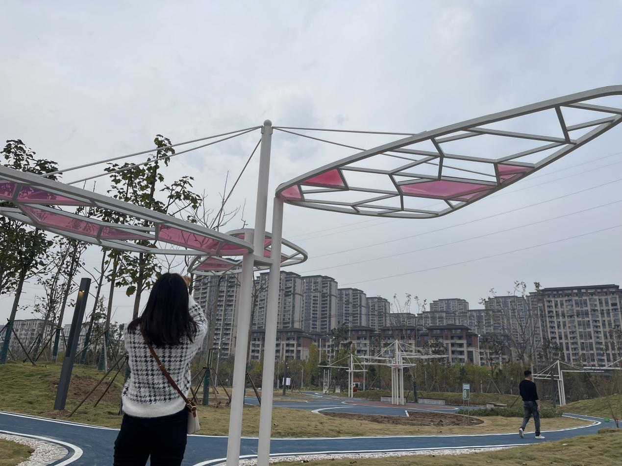 在正式驗收完之后,公園對外開放了部分景觀,吸引了廣大市民前來游玩,漫步公園跑道,聆聽花草絮語。幼童奔跑在草坪沙坑,樂此不疲;青年拼搏在籃球場之上,揮灑汗水;彩色玻璃如蟬翼,早有少女于此處拍照留念;林中小徑通幽處有一四角方亭,卻是歇腳聽曲的好去處。白天褪去了它的顏色,夜色拉開了它的帷幕,公園里彩燈高照,于高處俯瞰而下,星光點點,霓虹閃耀。光影之間,似蝴蝶似芍花的圖案便清晰的呈現(xiàn)在你的眼前;明暗之處,溫柔朦朧的氣質(zhì)撲面而來。你很難想象,半年前,這里還尚是一片亂林,樹木凌亂,雜草叢生。我們見證了它的改變,我們參與了它的改變。