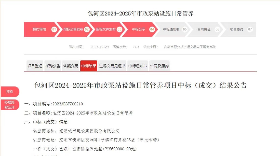 2023年12月29日,我司中標合肥市“包河區(qū)2024-2025年市政泵站設施日常管養(yǎng)”項目與“包河區(qū)2024-2025年市政設施應急管養(yǎng)服務單位”項目,這兩個項目的成功中標,既是我司阿米巴2024年開篇之作,亦是我們兩年間耕耘包河區(qū)市政養(yǎng)護市場的收獲。換句話說,這既是新起點,也是新征程。