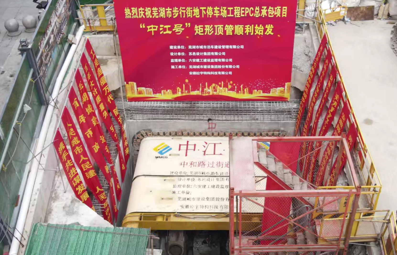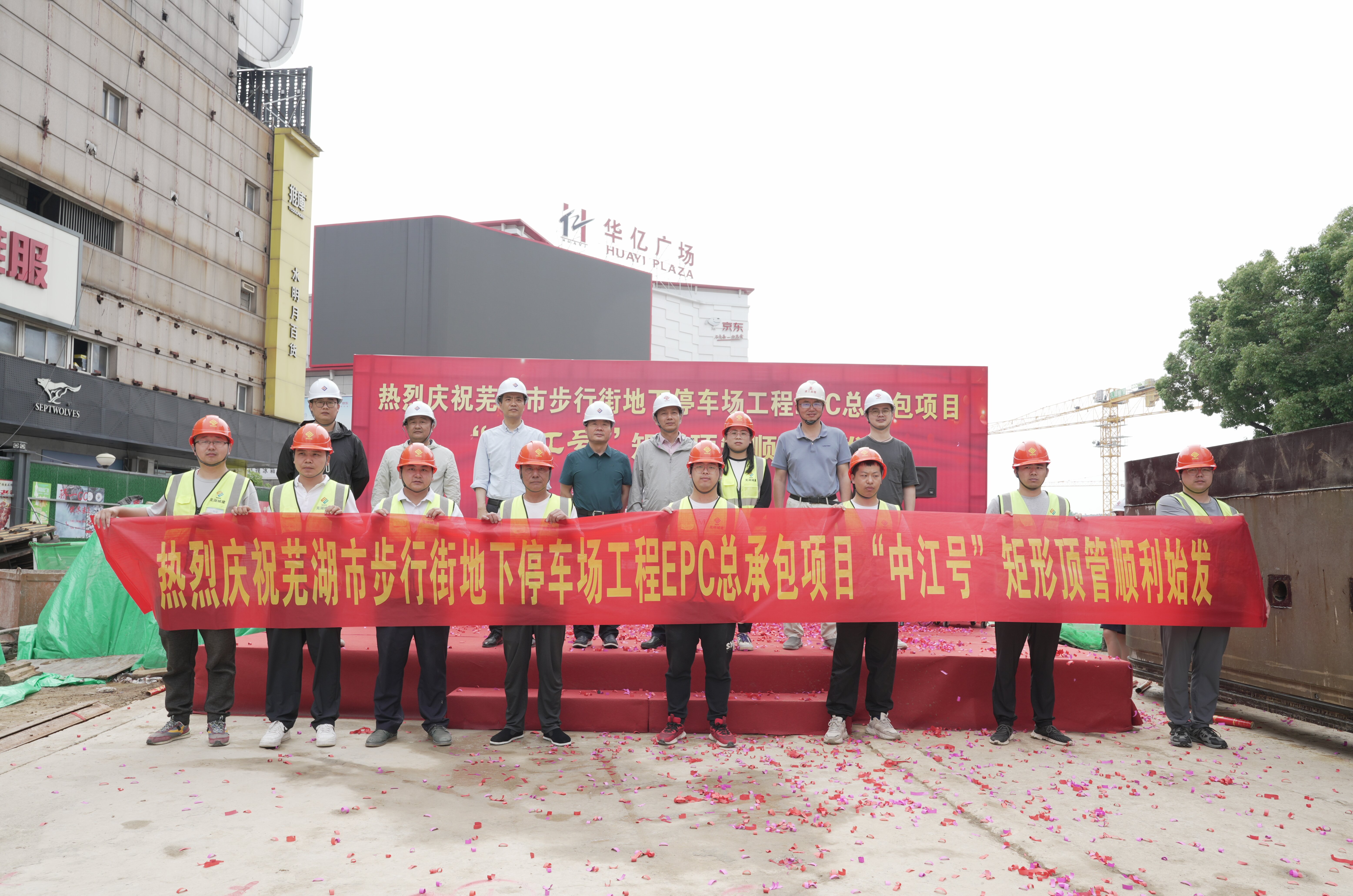 2024年5月22日,蕪湖市中和路步行街地下停車場工程舉行矩形頂管頂進始發(fā)儀式,安徽中江城建集團有限公司董事長朱志福、蕪湖市交通投資有限公司董事長戴松柏出席儀式。